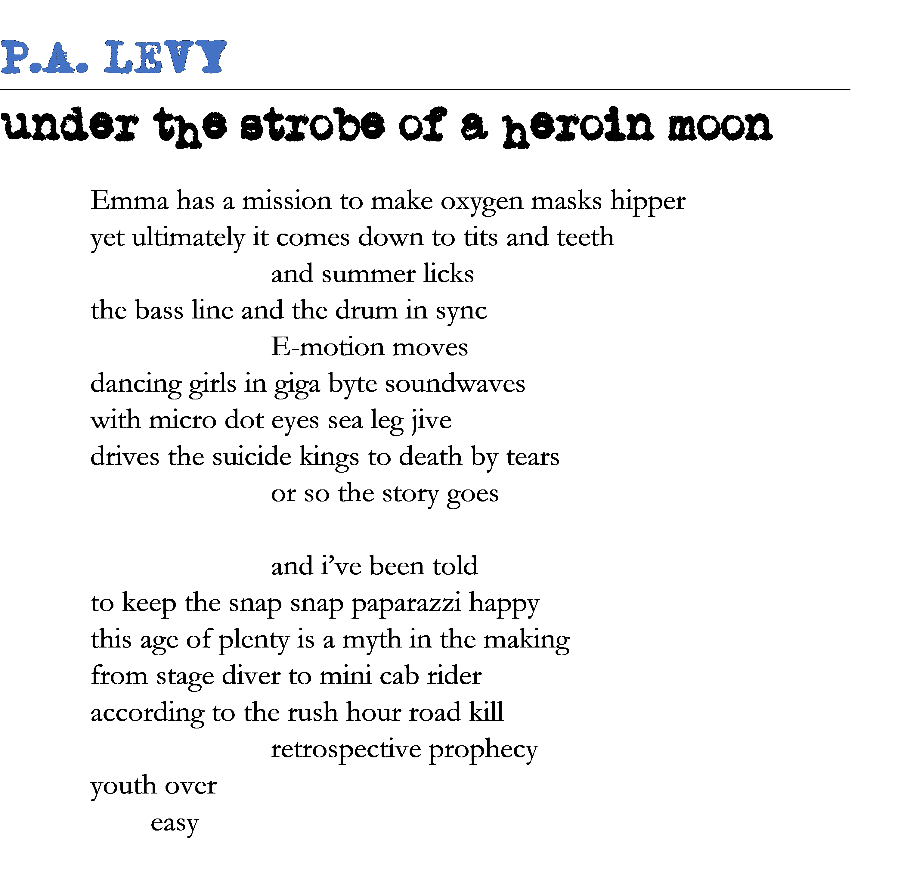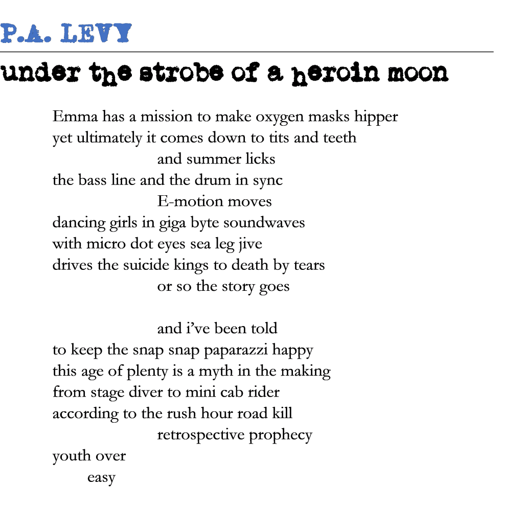 March 24, 2021March 27, 2021 J H 3 poems by: p.a. levy Share this: Click to email a link to a friend (Opens in new window) Email Click to share on Facebook (Opens in new window) Facebook Like Loading... Related