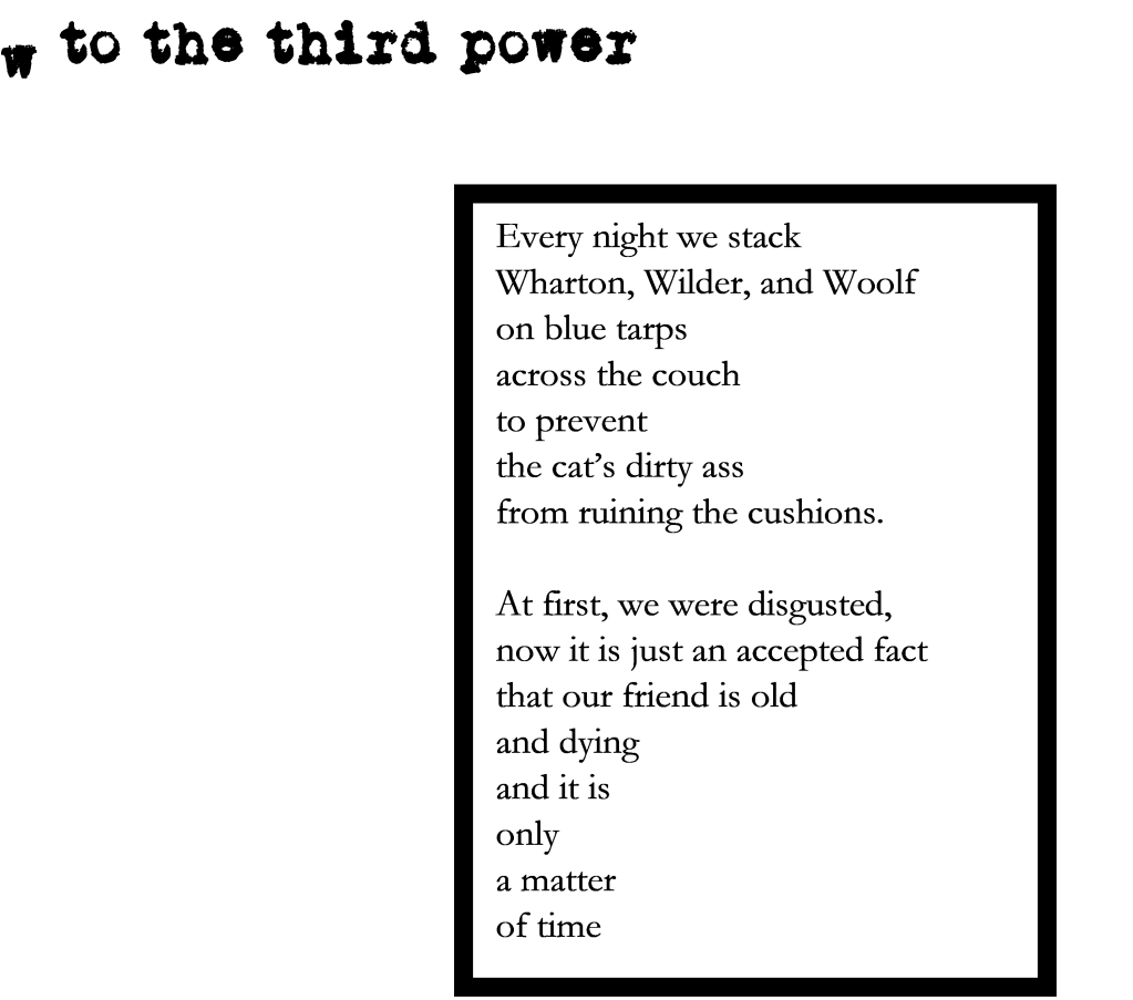 […] It All in the End, The Wisdom of Johnny Cash, and W to the Third Power are available for viewing at Heroin Love Songs. Please stop by and read all the amazing work by other featured poets as well and support small […]